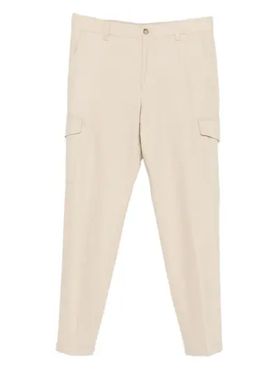beige tapered leg cargo pockets button closure belt loops side pockets