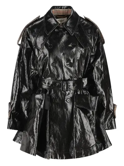 black belt flap pockets long sleeves double-breasted button fastening
