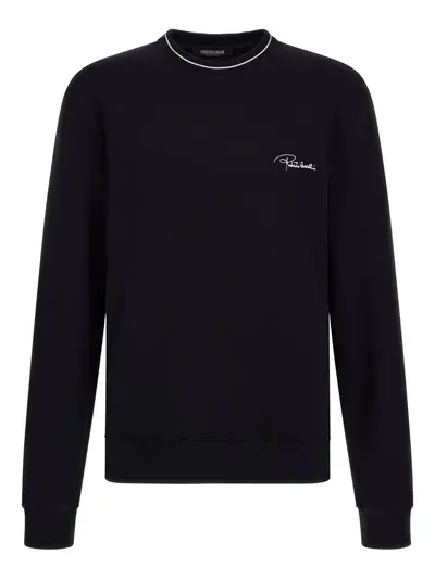 black embroidered logo round neck long sleeves ribbed trims graphic print at the rear