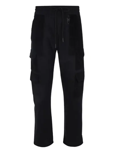 black corduroy panels multiple pockets drawstring fastening elasticated waistband button detail