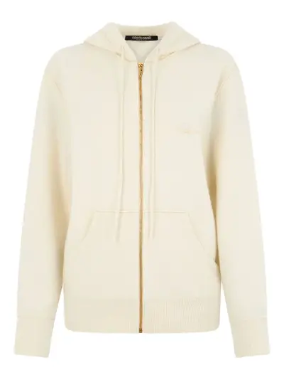 beige zip fastening hood front pockets logo detail