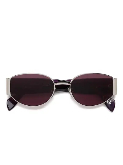 violet round frame silver-tone hardware nose pads tinted lenses logo detail These glasses come with a protective case.