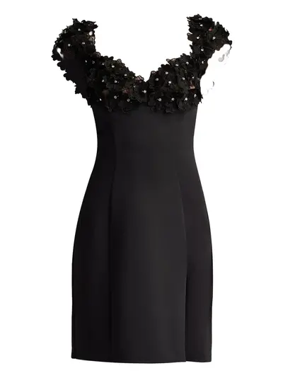 black floral-lace trim crystal embellishment sweeatheart-neck zip fastening slit detail