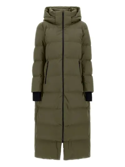 olive green quilted design zip fastening hooded neckline long sleeves side pockets