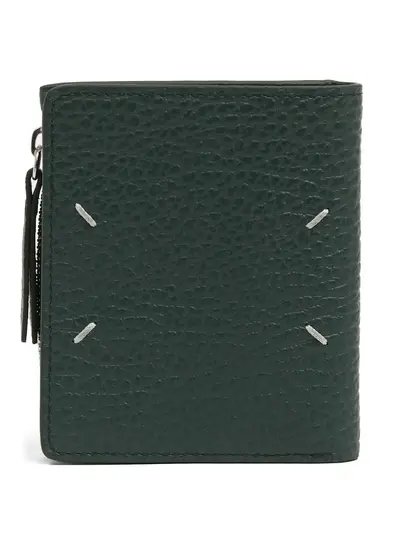 dark green grainy texture zip section card holder embossed logo four stitches at the back
