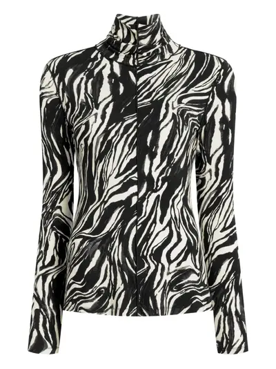 black and white marble print long sleeves high neck jersey fabric