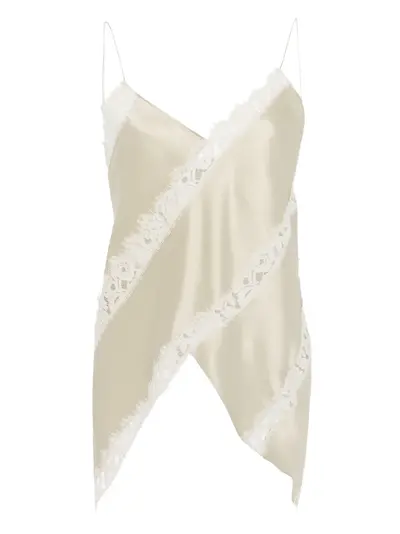 champagne silk fabric lace panel spaghetti straps