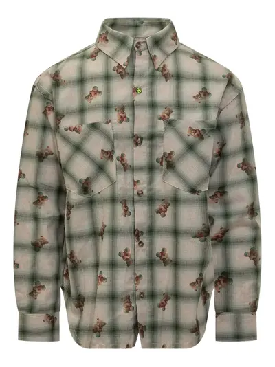 beige and green check pattern chest pockets button fastening long sleeves buttoned cuffs
