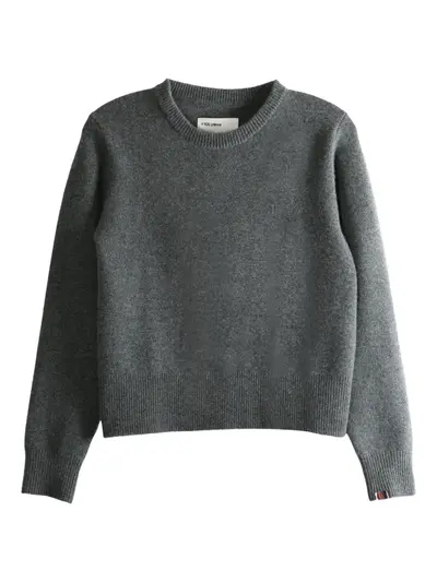 grey ribbed hem ribbed cuffs round neck long sleeves fine knit