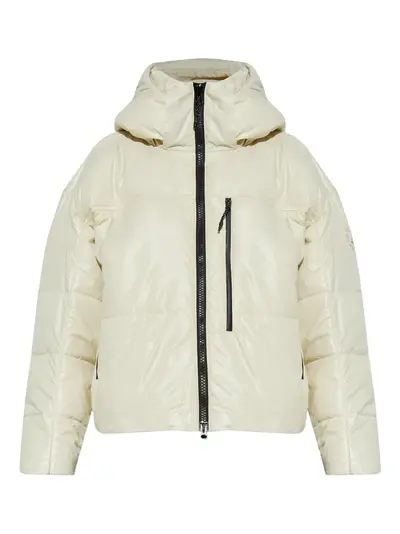 off-white hooded zip fastening drawstring hem zip pocket quilted