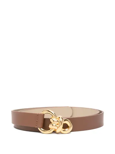 brown gold-tone hardware knotted detail buckle fastening
