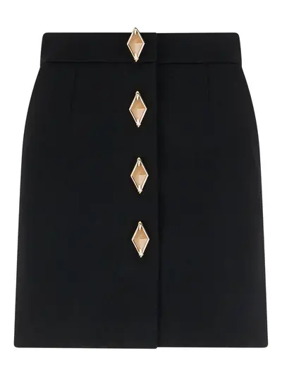 black jewel embellishment button fastening mini length high waist concealed zip fastening