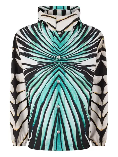 blue graphic print hood press stud fastening long sleeves elasticated hem and cuffs