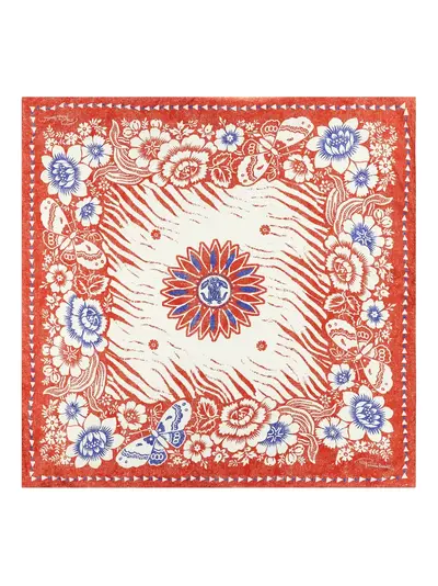 red floral print zebra pattern butterfly motif border detail monogram detail