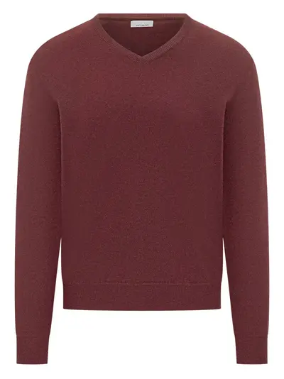 dark red V-neck long sleeves ribbed hem ribbed cuffs