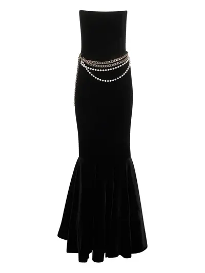 black strapless inner corset removable chain and pearl belt mermaid skirt
