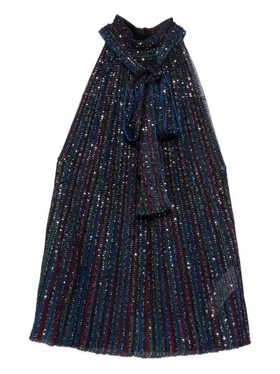 multicolor silk blend stripe detailing tie detail high neck sleeveless