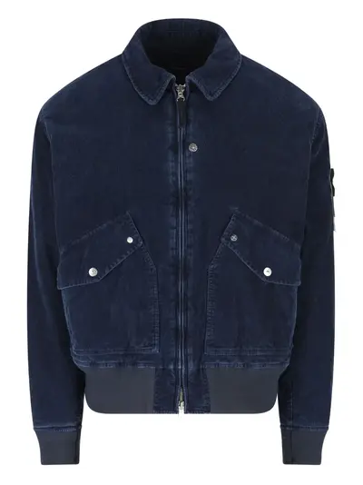 blue corduroy texture zip fastening point collar front flap pockets ribbed hem