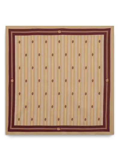 light brown striped logo motif border detail