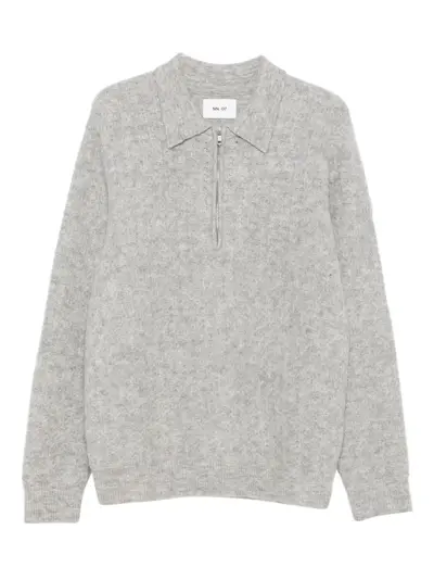 grey polo neck half zip fastening long sleeves ribbed cuffs and hem