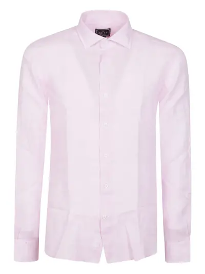 pink linen button fastening point collar long sleeves buttoned cuffs