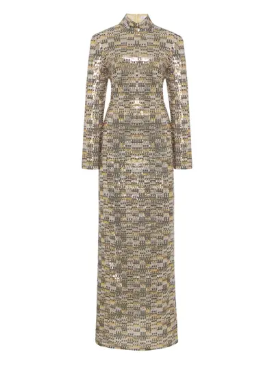 gold-tone and silver-tone sequin embellished high neck long sleeves back slit