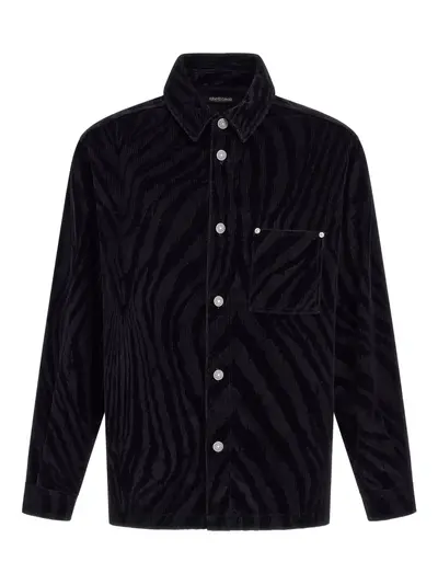 black zebra pattern corduroy texture chest pocket button fastening long sleeves