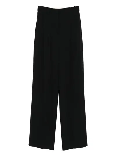 black pleat detailing belt loops side inseam pockets rear welt pocket concealed front fastening