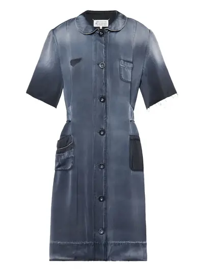 blue short sleeves frayed edges peter-pan collar button fastening patch pockets