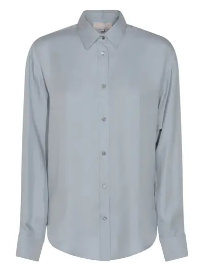 grey button fastening long sleeves buttoned cuffs pointed collar