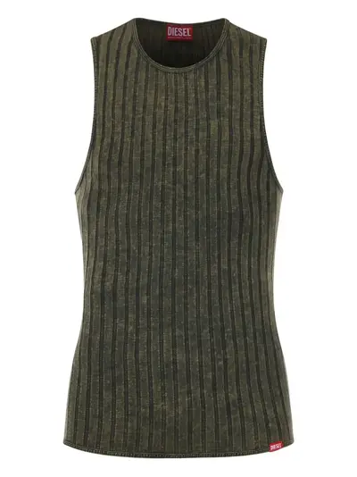 olive green ribbed knit sleeveless round neck logo patch