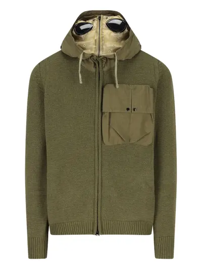 green hood drawstring front zip fastening chest patch pocket ribbed cuffs ribbed hem C.P. Company suggests removing any detachable accessories before washing.