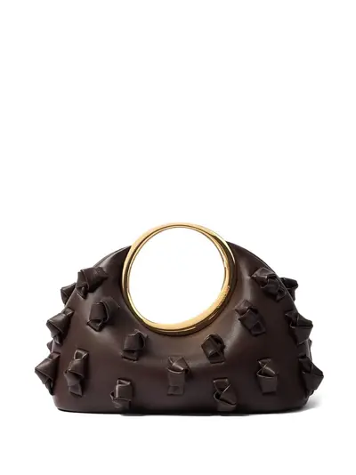 midnight brown gold-tone handle knotted detail magnetic closure leather