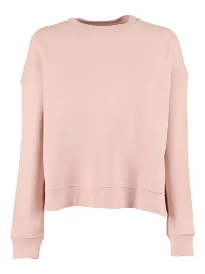 pink embroidered logo ribbed hem and cuffs crew neck long sleeves