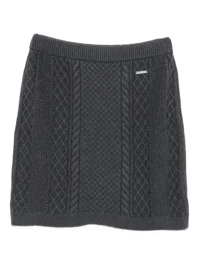 charcoal grey cable knit ribbed waistband logo plaque thigh length