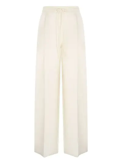 beige drawstring fastening wide leg side seam pockets ribbed waistband