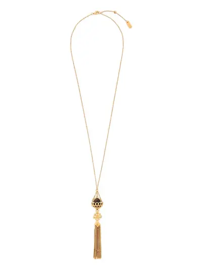 gold-tone brown obsidian openwork detail tassel detail adjustable length lobster clasp fastening Normal everyday use and external agents may reduce the lustre of gemstones and gold surfaces. To maintain, use specific, non-abrasive products specially meant for cleaning jewellery.