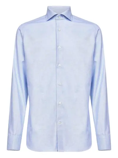 light blue jacquard pattern button fastening long sleeves buttoned cuffs curved hem