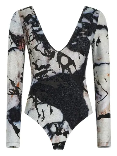 black and white marble print long sleeves V-neck Just a reminder that this piece must be tried on over your own garments.