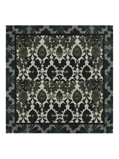 green brocade print border detail square shape 100% silk