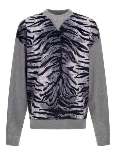 grey zebra print crew neck long sleeves ribbed hem ribbed cuffs