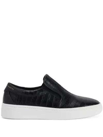 black/white leather two-tone design embossed crocodile effect slip-on style round toe branded heel counter chunky rubber sole