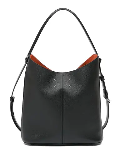 black pebbled texture dual-wear strap studded base four stitches at the back conical shape