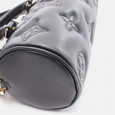 The Louis Vuitton Papillon BB Bubblegram Handbag in black leather features a playful twist on the classic Papillon design. With a compact size and unique detailing, this bag is both eye catching and functional. The rounded shape and sturdy leather construction make it a versatile accessory for day to night use.