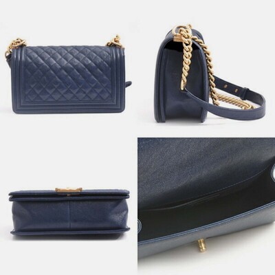 Chanel Ladies Boy Navy Caviar Skin Chain Shoulder Bag 1227926 (lpn31031677)