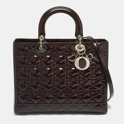 Dior Burgundy Patent Leather Large Lady Dior Tote Bag 1224970 (lpn31031761)