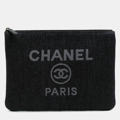 Chanel Black Medium Straw Deauville O Case Clutch 1227246 (чёрный, lpn31031763)