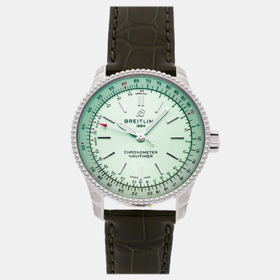 Pre-Owned Breitling Navitimer A17395361L1P1 Green Automatic Stainless Steel Men's wristwatch 35 mm 1227144 (зелёный, lpn31031765)