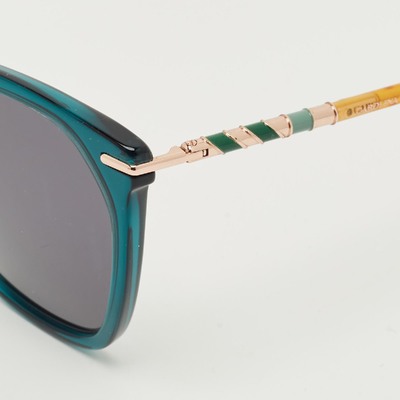 Carolina Herrera’s Her 0091/S sunglasses bring a playful duality—green butterfly frames in a bold sweep at the front, balanced by tortoise arms that nod to timeless charm. Grey lenses soften the look, making them a confident companion for both bright city streets and languid escapes.
