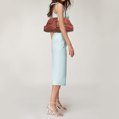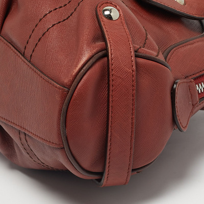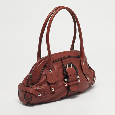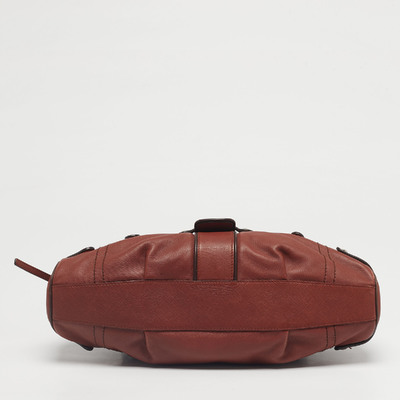 The satchel channels Salvatore Ferragamo’s heritage with its bold brick brown leather and signature Gancini buckle at the center. Finished with silver tone hardware and double top handles for quick grab, while the craftsmanship speaks unmistakably of its Italian roots.